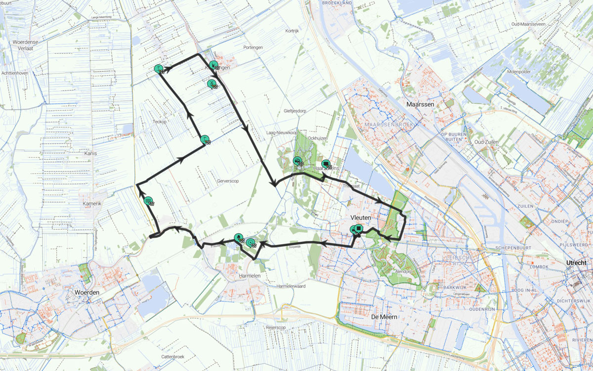 De Haarzuilens route brengt u van NS Station Vleuten, door Harmelen, Putkop, Kockengen en Haarzuilens weer terug naar het station in Vleuten. Onderweg komt u langs natuurgebied Het Vijverbos. U fietst over de Hollandse Kade tussen de weilanden door. Komt langs recreatieplas de Grutto.